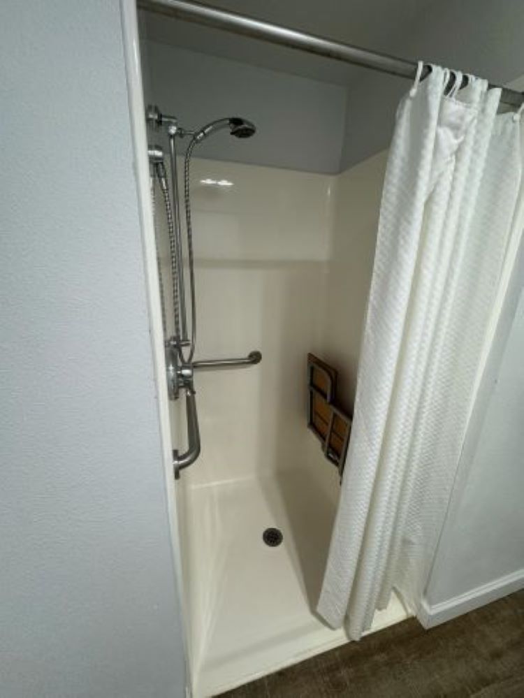 AND HAIRDRYER, PRIVATE PATIO. ROLL-IN SHOWER WITH LOWERED AMENITES. BEACH ACCESS IS ACROSS STREET.
