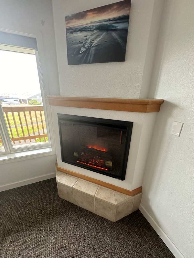 EQUIPPED WITH ELECTRIC FIREPLACE, MICROWAVE, FRIDGE, COFFEE-MAKER (4-CUP), IRONING STATION, AND HAIRDRYERS,